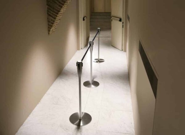 Columna Battista con cinta extensible se obtiene mediante un sofisticado proceso del tubo de acero que se conifica para poder pasar de un ø 70 mm a un ø 32 mm. Esta tecnología permite realizar una columna de forma sinuosa, delgada en la parte inferior, para reducir el impacto visual. La columna es de acero pintado con polvos epoxi y base de hierro fundido pintado con polvos epoxi o en acero inoxidable, detalles en aluminio pulido y acero inoxidable. Los expositores del sistema Koala pueden fijarse según las diferentes configuraciones mono o bi-frontales a las columnitas.