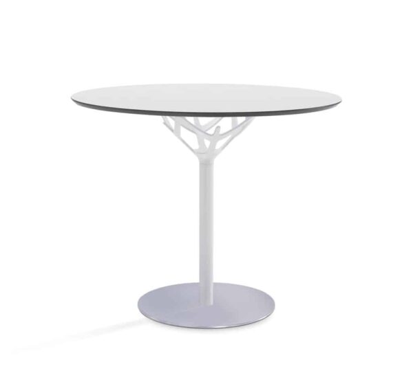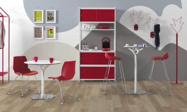 Mesitas con plano disponible en laminado HPL. Columna de acero cromado o recubierto con polvos epoxi. Bases de acero recubiertas con polvos epoxi o revestidas en acero inox brillante. Las bases vienen equipadas para anclarse al suelo. La estructura de apoyo de la repisa de las mesitas Cicerone va equipada con colgadores para bolsos y esta’ realizada en aluminio fundido recubierto con polvo epoxi.