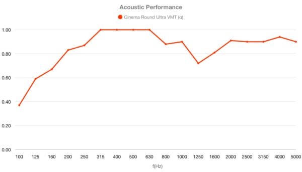 Un nuevo amortiguador acústico de lujo, Cinema Round Ultra VMT combina un alto rendimiento acústico con la última tecnología VMT para los clientes más exigentes. Este nuevo absorbente, inspirado en nuestro best-seller Cinema Round Ultra, tiene 15 colores VMT estándar y ocho colores de madera.