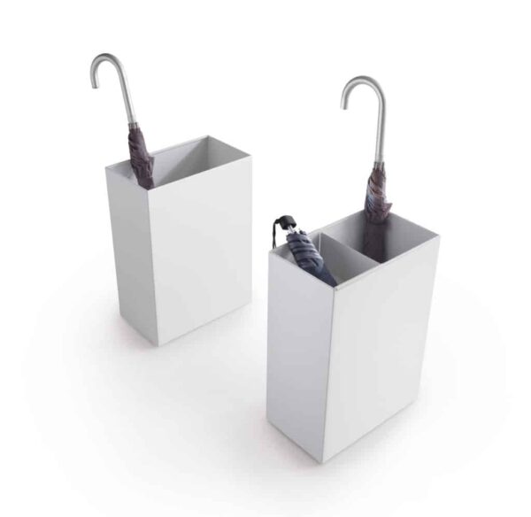 Papeleras y paragüeros realizados en acero recubierto con polvos epoxídicos.