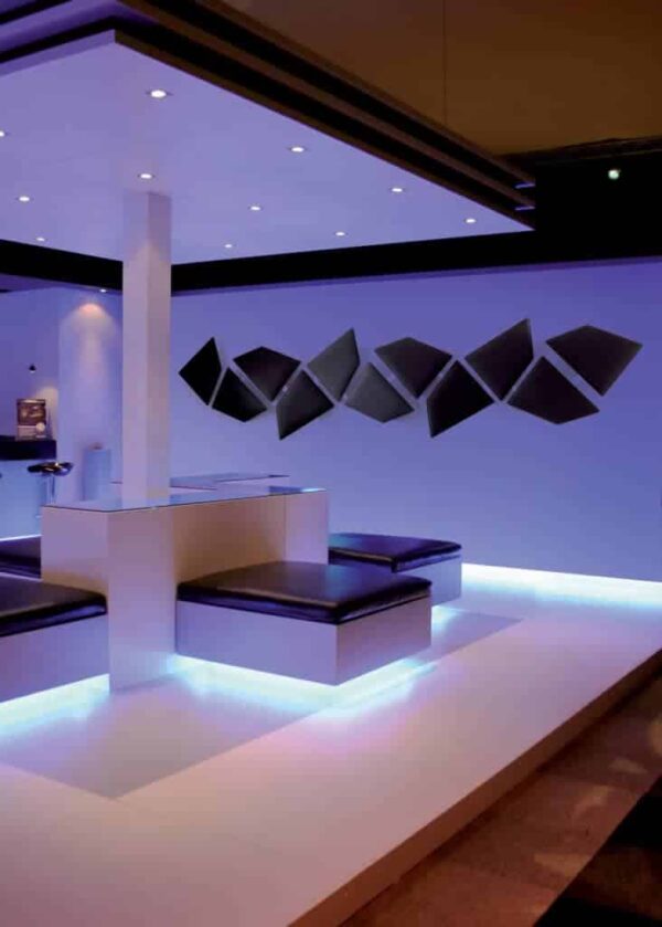Flap no es tan sólo un panel acústico absorbente, Flap es un objeto de diseño con un notable impacto estético y formal para crear composiciones infinitas con formas cada vez diferentes. Un sistema modular patentado, innovador tanto por la tecnología Snowsound empleada, como por concebir el panel como complemento de decoración que se inserta perfectamente en todas las salas que necesitan una corrección acústica.