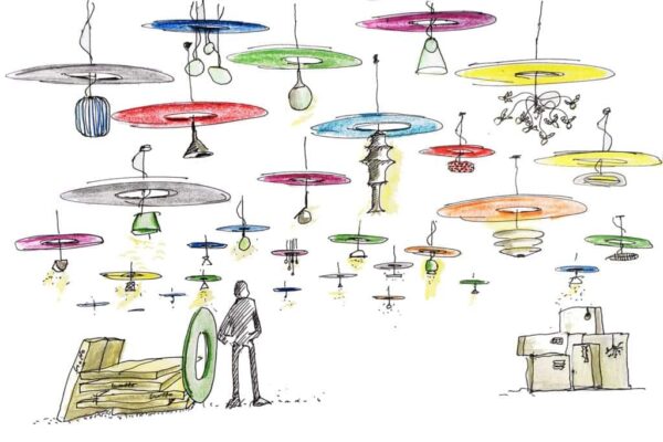 Giotto es una línea de paneles fonoabsorbentes Snowsound de forma ovalada o circular, que se propone en dos versiones: Giotto ceiling, con un sistema de suspensión fijado al techo mediante cables que permiten regular la altura, y Giotto wall, que presenta una peculiar sujeción a la pared elaborada en acero que sostiene el panel desde el orificio central mediante un sistema de encastre.