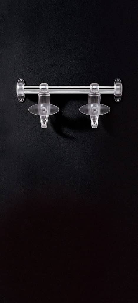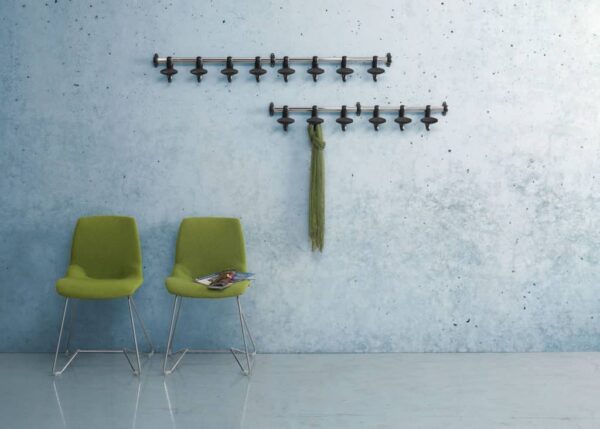 Percheros de pared modular en acero cromado con ganchos en tecnopolimero o policarbonado.