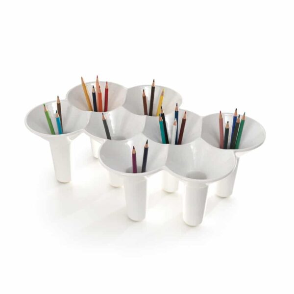 Objeto original multifuncional de gres de colores: cada pieza está ensamblada a mano con un proceso especial de encolado. Se puede usar como maceta, portaobjetos, portalápices, paragüero o, simplemente, gracias a su forma sinuosa, como objeto decorativo.