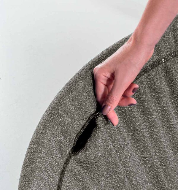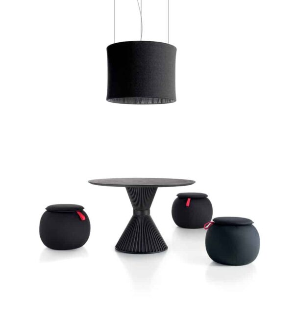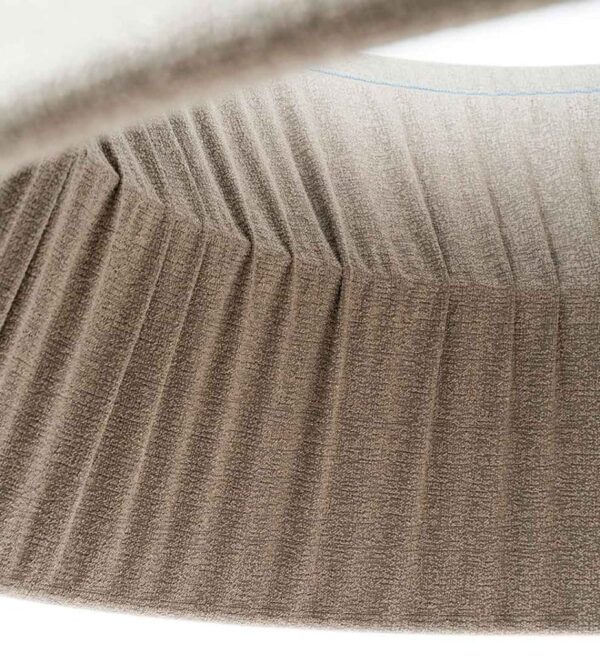 Lámpara con pantalla fonoabsorbente de gran tamaño realizada con tejido Snowsound Fiber 8 Bouclé. Consta de una estructura tubular que hace que el tejido fonoabsorbente del revestimiento caiga, ciñéndose en la parte exterior y creando un plisado en la interior. El espacio que se crea entre el tejido externo y el interno permite aumentar sus prestaciones acústicas. Disponible en dos medidas: 80 o 120 cm de diámetro. La lámpara puede colgarse del techo mediante tres cables regulables en altura. La lámpara con pantalla es compatible con diferentes cuerpos luminosos. El revestimiento de Snowsound Fiber 8 Bouclé es fácilmente desenfundable gracias a las cremalleras ubicadas en el perímetro superior.