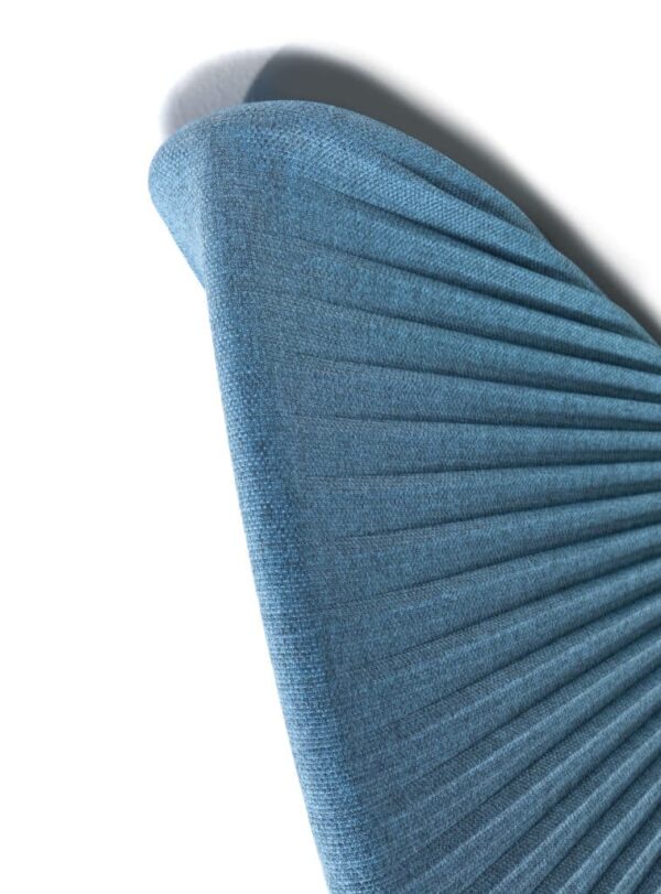 Estructura tridimensional fonoabsorbente que se despliega en abanico con una curvatura sugerida por las dobleces del tejido plisado que recuerda la aleta (“pinna”) de un pez de grandes dimensiones.