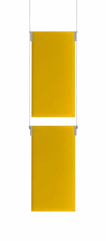 El sistema Tra light permite suspender los paneles realizados con la tecnología Snowsound de una pareja de cables de acero mediante juntas metálicas oscilantes situadas enfrente de los ángulos superiores. Los paneles se pueden fijar libremente a lo largo de los cables, mientras las juntas oscilantes mantienen siempre la perfecta verticalidad del panel.